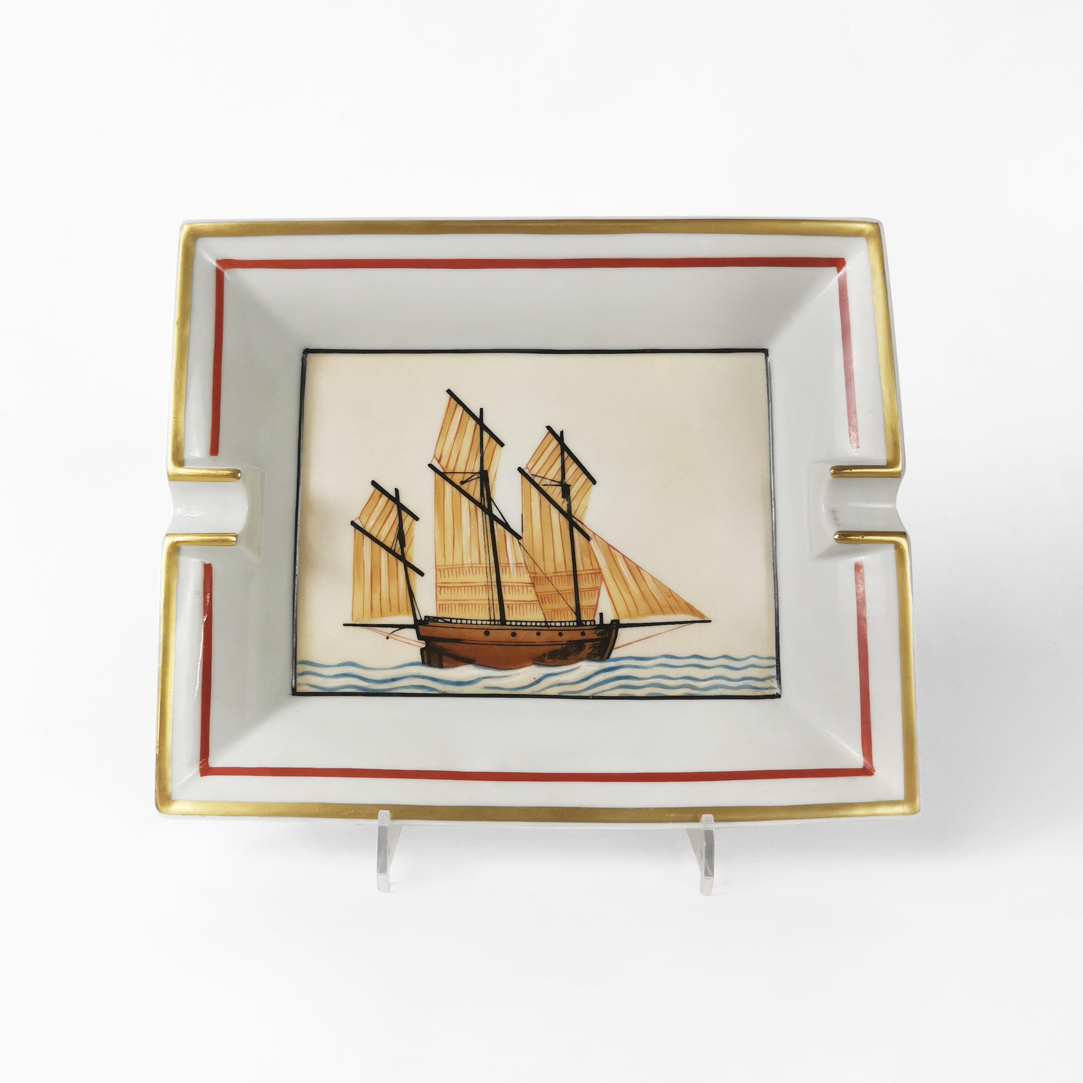 Porcelaine à décor de voilier, 19x16 cm