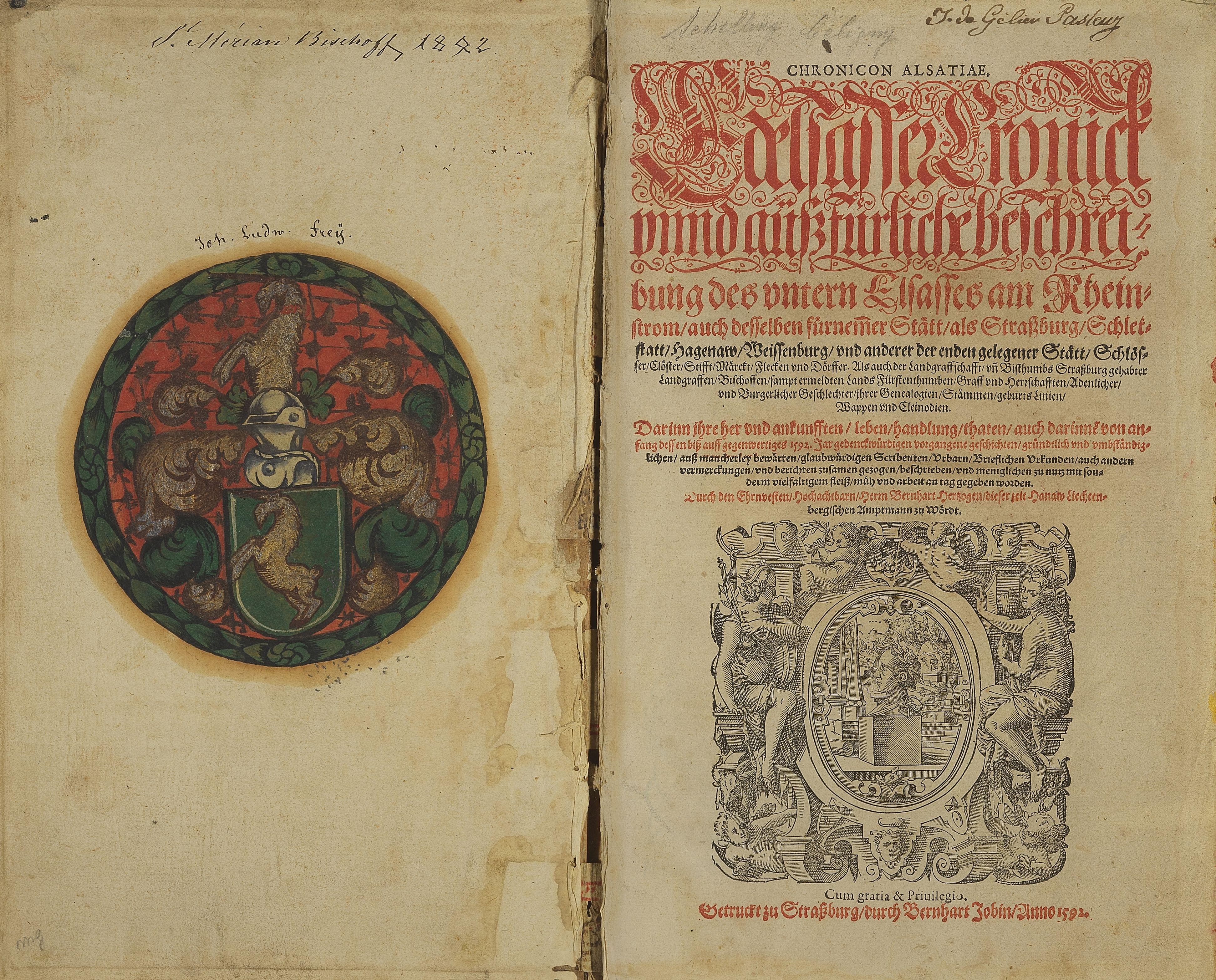 4. HERTZOG (Bernhart) : Chronicon Alsatiae. Edelsasser Cronick und aussfürliche [...] … Strasbourg , Bernhart Jobin, 1592
