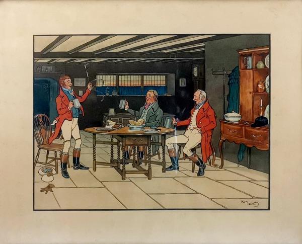 Deux scènes d'intérieur animées de personnages, aquarelle et gou...