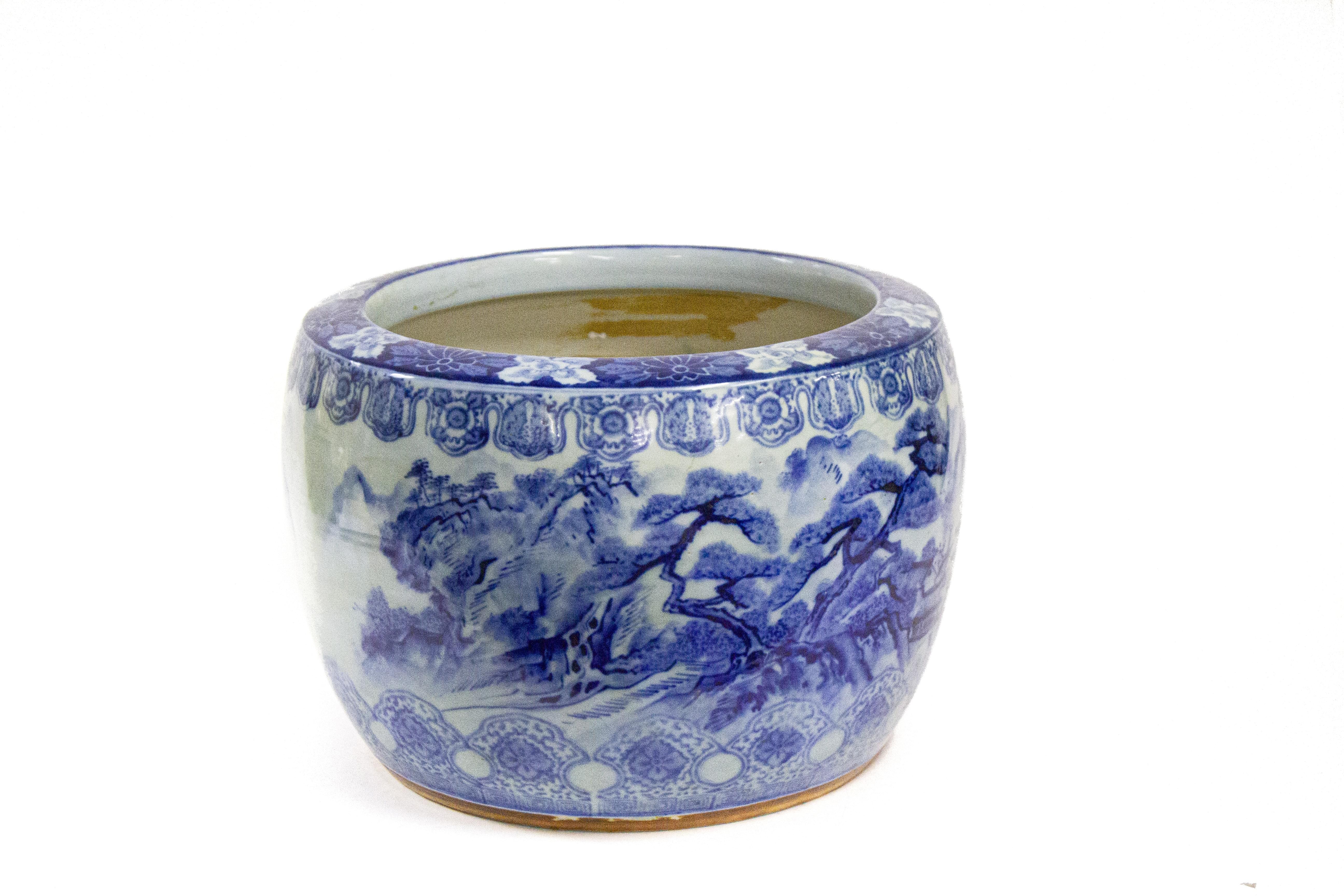 Porcelaine émaillée bleu blanc à décor de paysages, D 43 cm