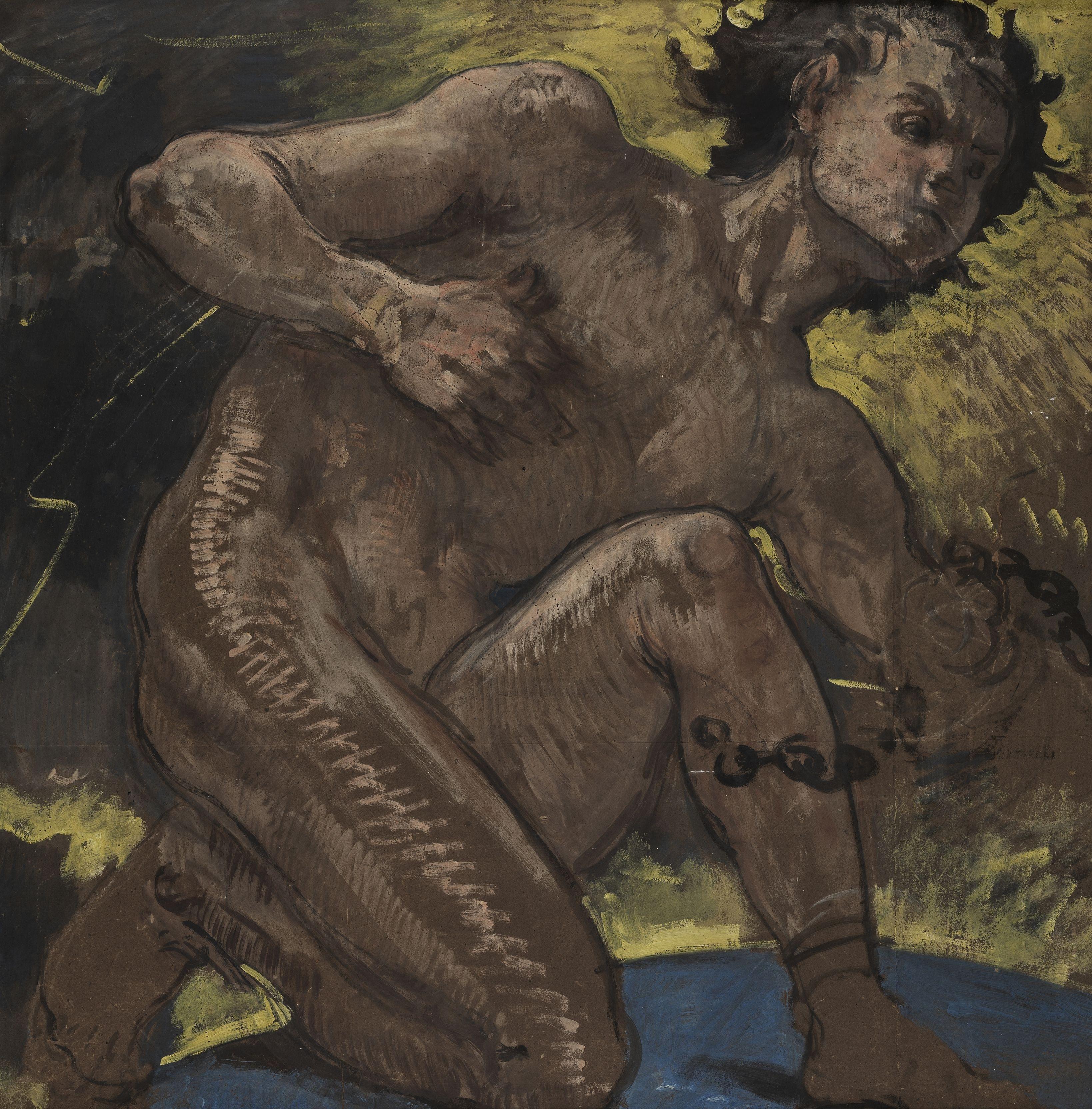 Etude de nu masculin, huile sur carton attribuée sur le cadre, 76x76 cm