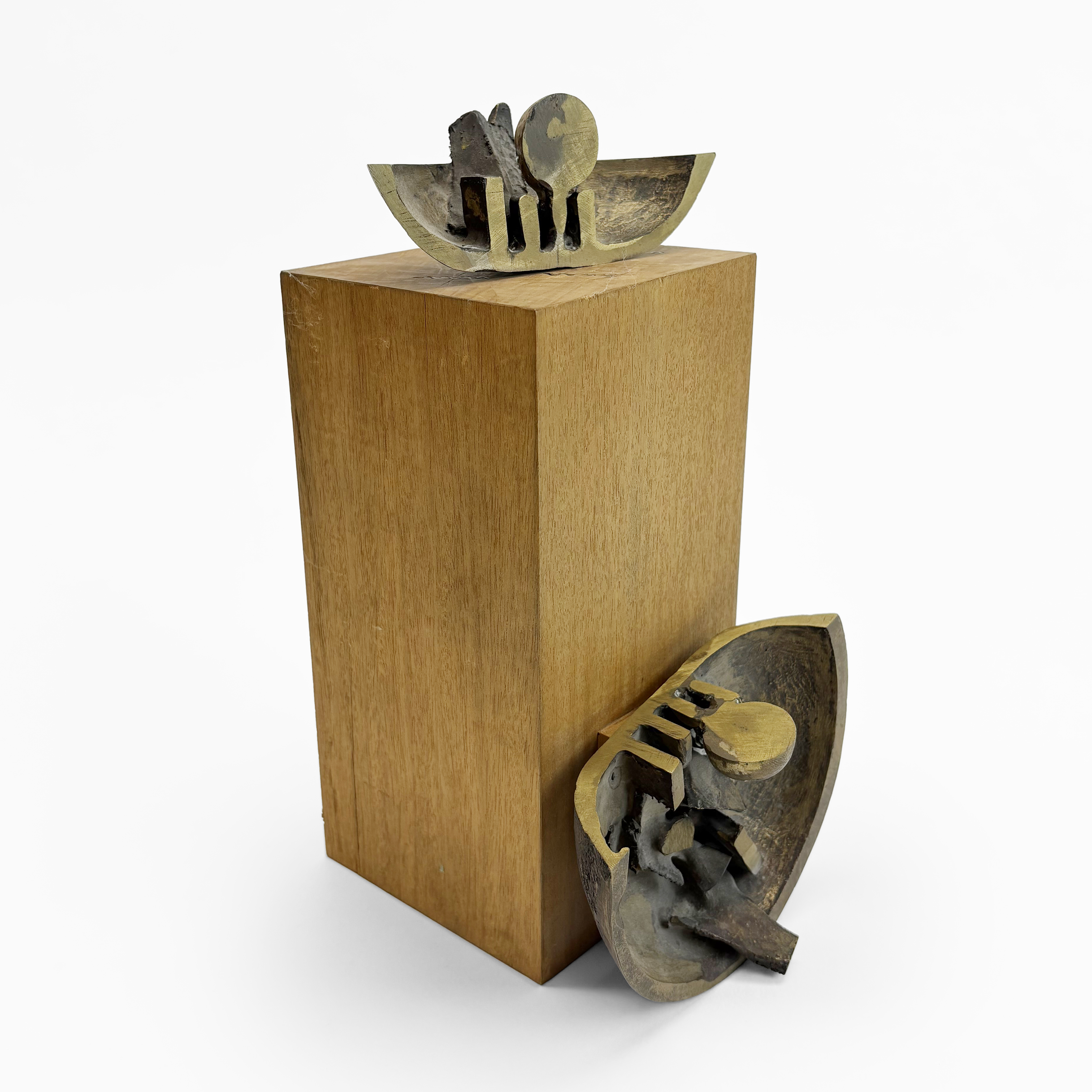 Sculpture oeuf, bois et métal, 14x24x12 cm