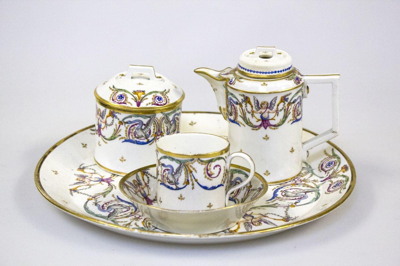 Porcelaine à filets dorés et à décor d'un S sous couronne de fle...