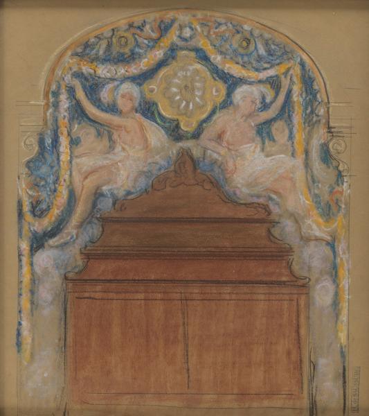 Femme jouant de la mandoline, étude, mine de plomb, cachet de l'...