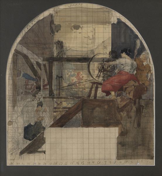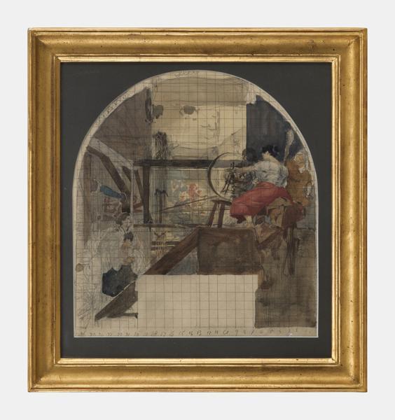 Etude d'éventail à décor de personnages, encre sur papier, cache...