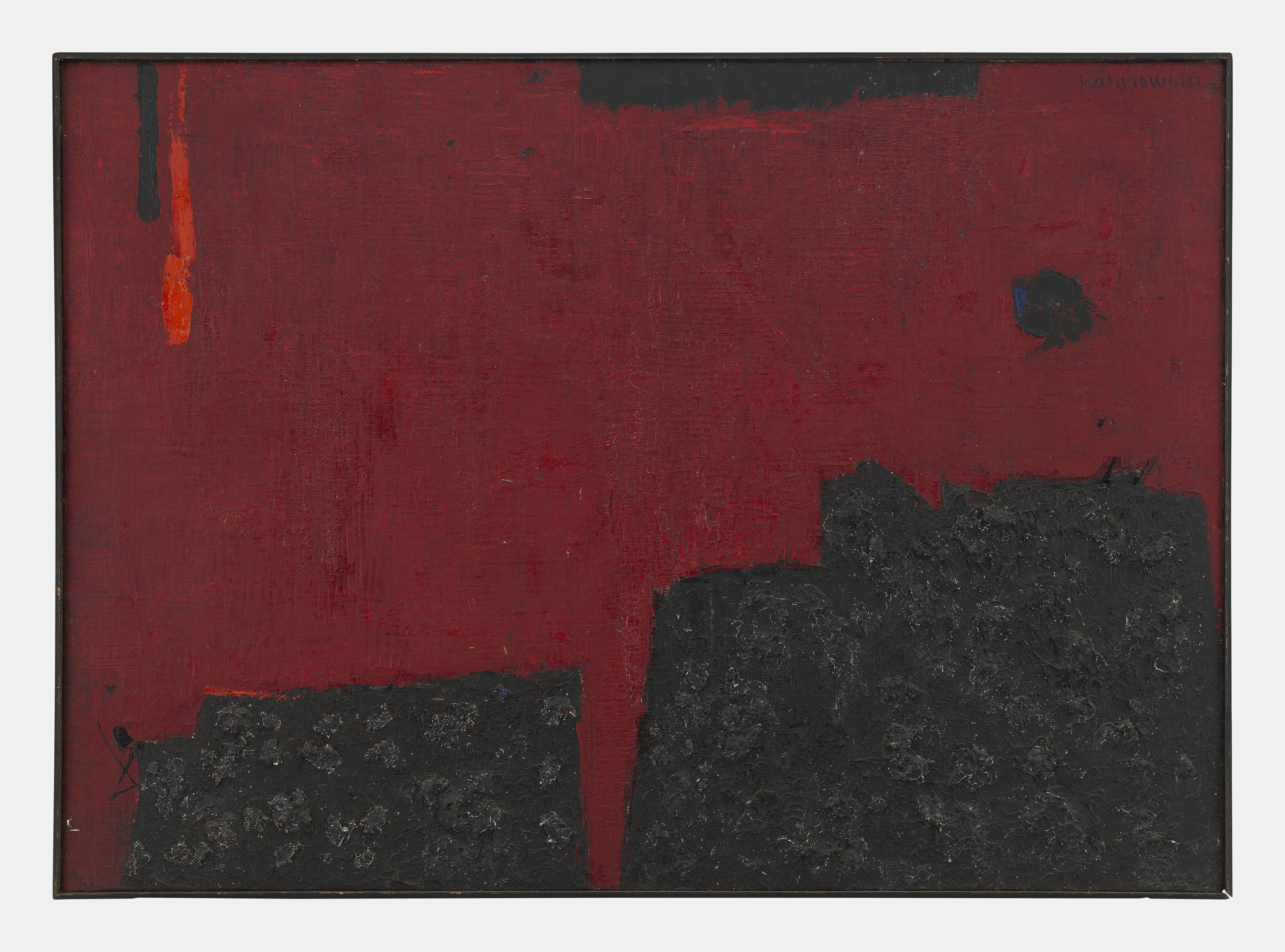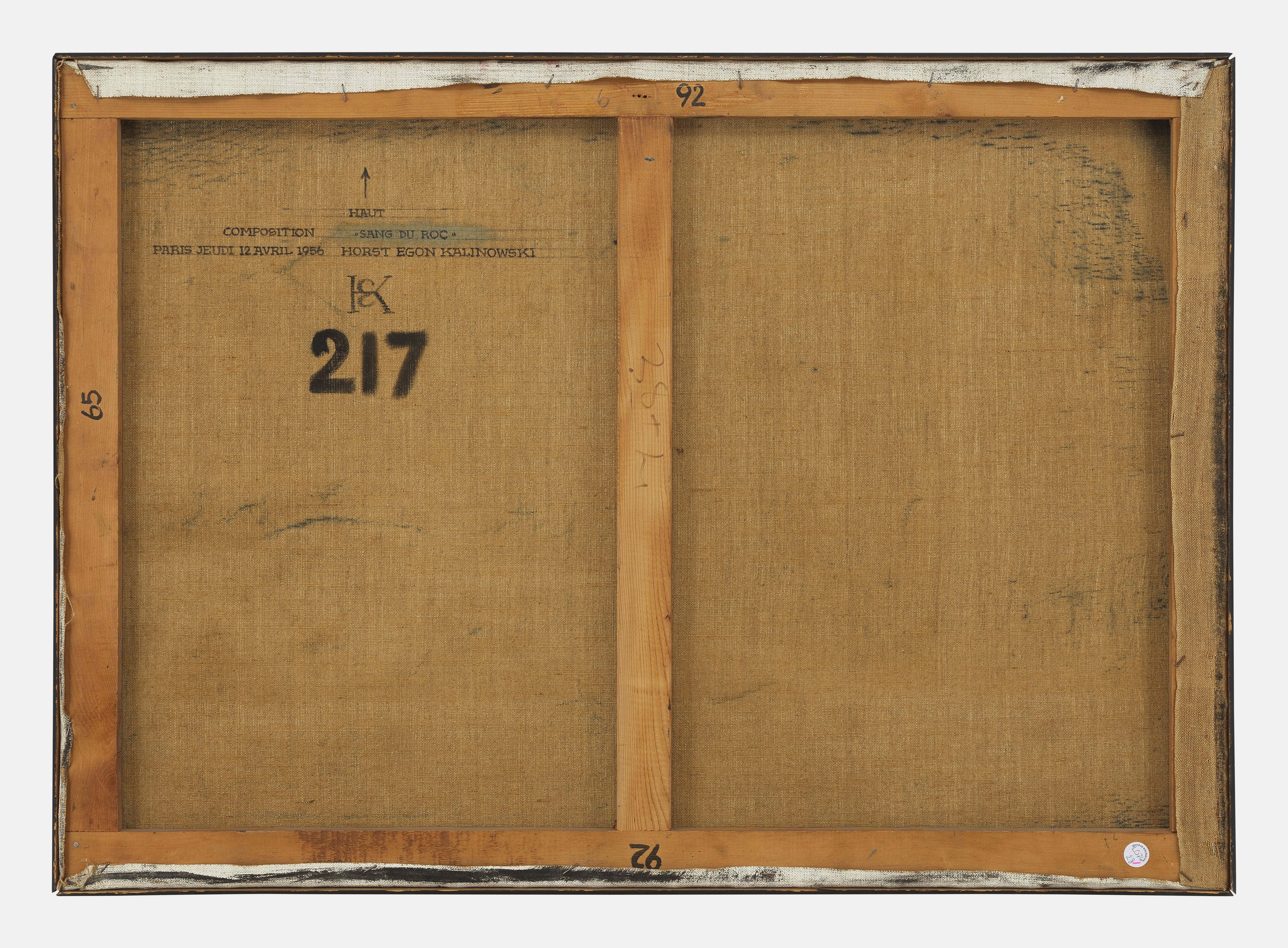 Sang du roc, huile sur toile, signée, datée 12 avril 1956 et titrée au dos, 65x92 cm
