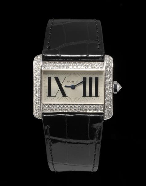 125. Cartier, Tank Divan, montre rectangulaire à quartz pavée de diam...