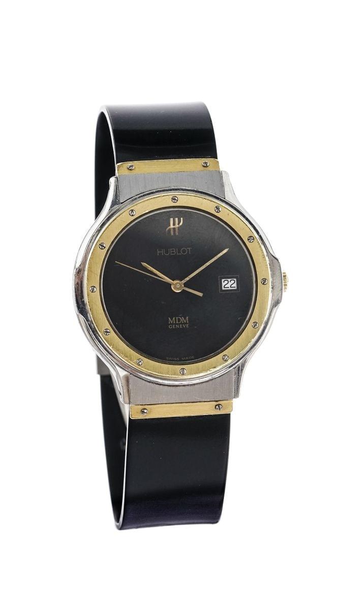 Cadran doré, index bâton et aiguilles noirs, or 750, 15x18 mm, p...