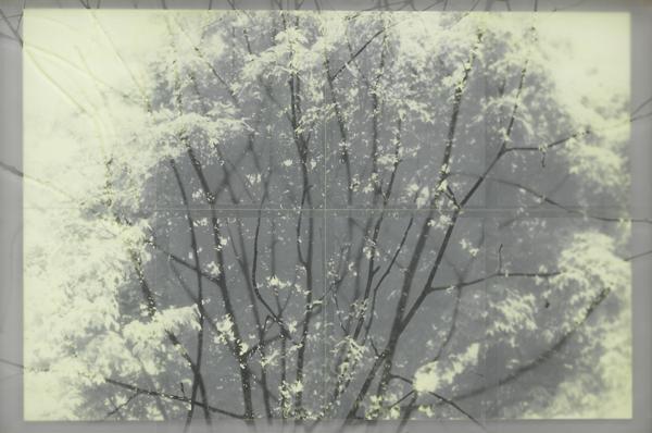 Winterprojektion auf verstaubtem fenster glas, technique mixte,...