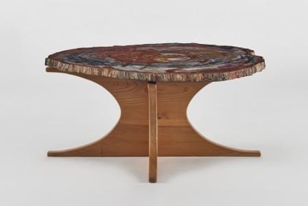 196. Tranche de bois pétrifié monté en table basse