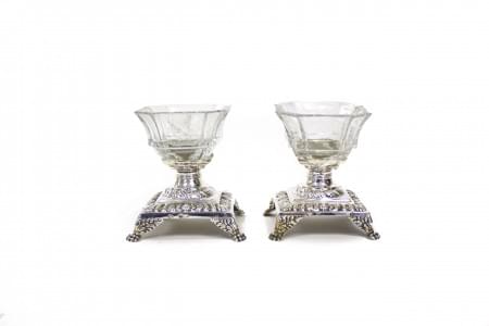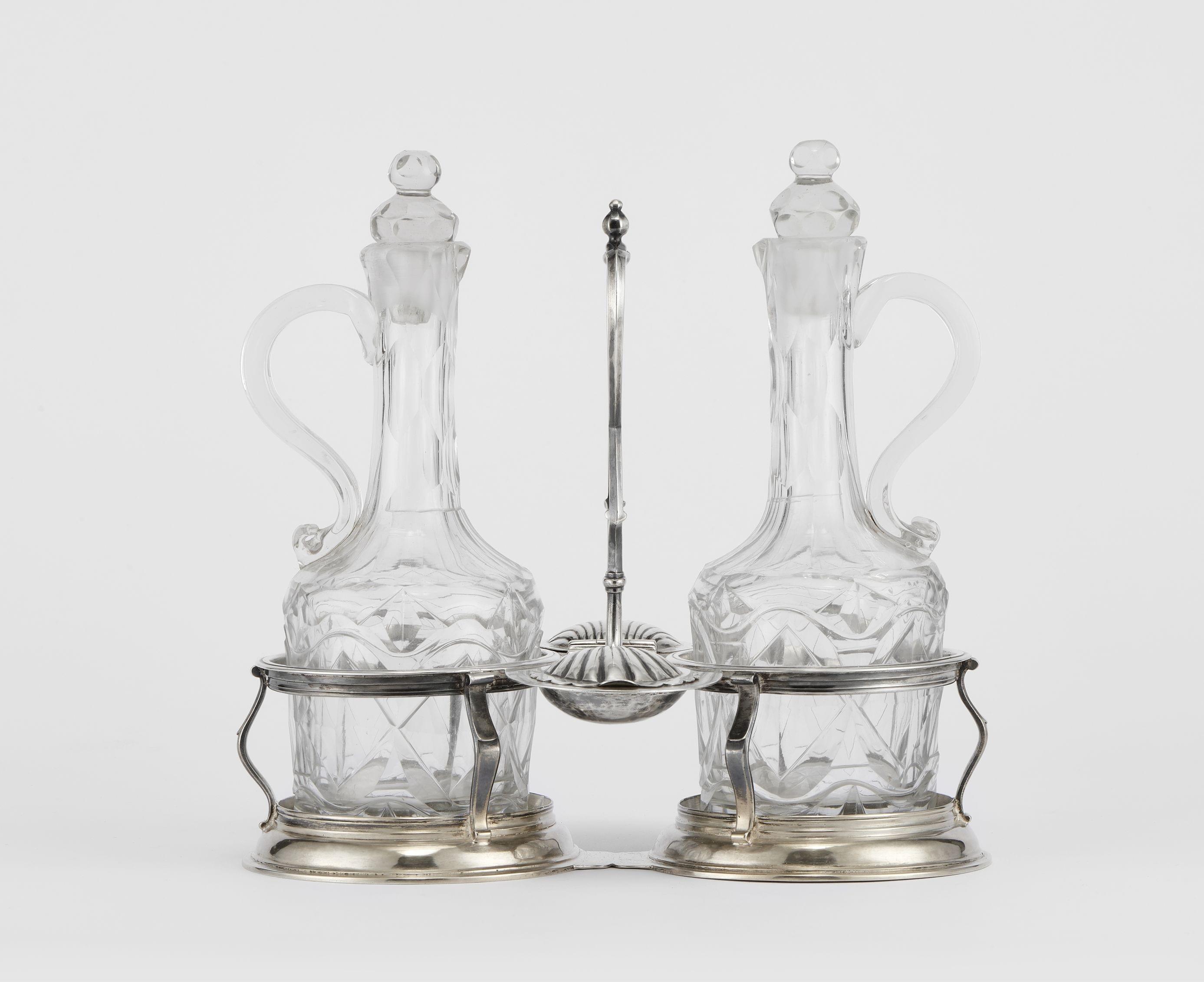 408. Huilier et vinaigrier à motif de perlettes et rubans noués,