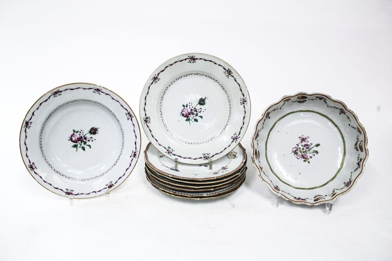 3466. Huit assiettes Chine et un bol, compagnie des Indes,XVIIIe s