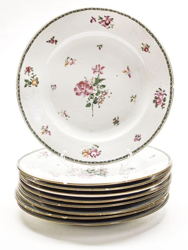 Porcelaine à décor de fleurs au naturel, bordure verte, chine, XVIIIe s