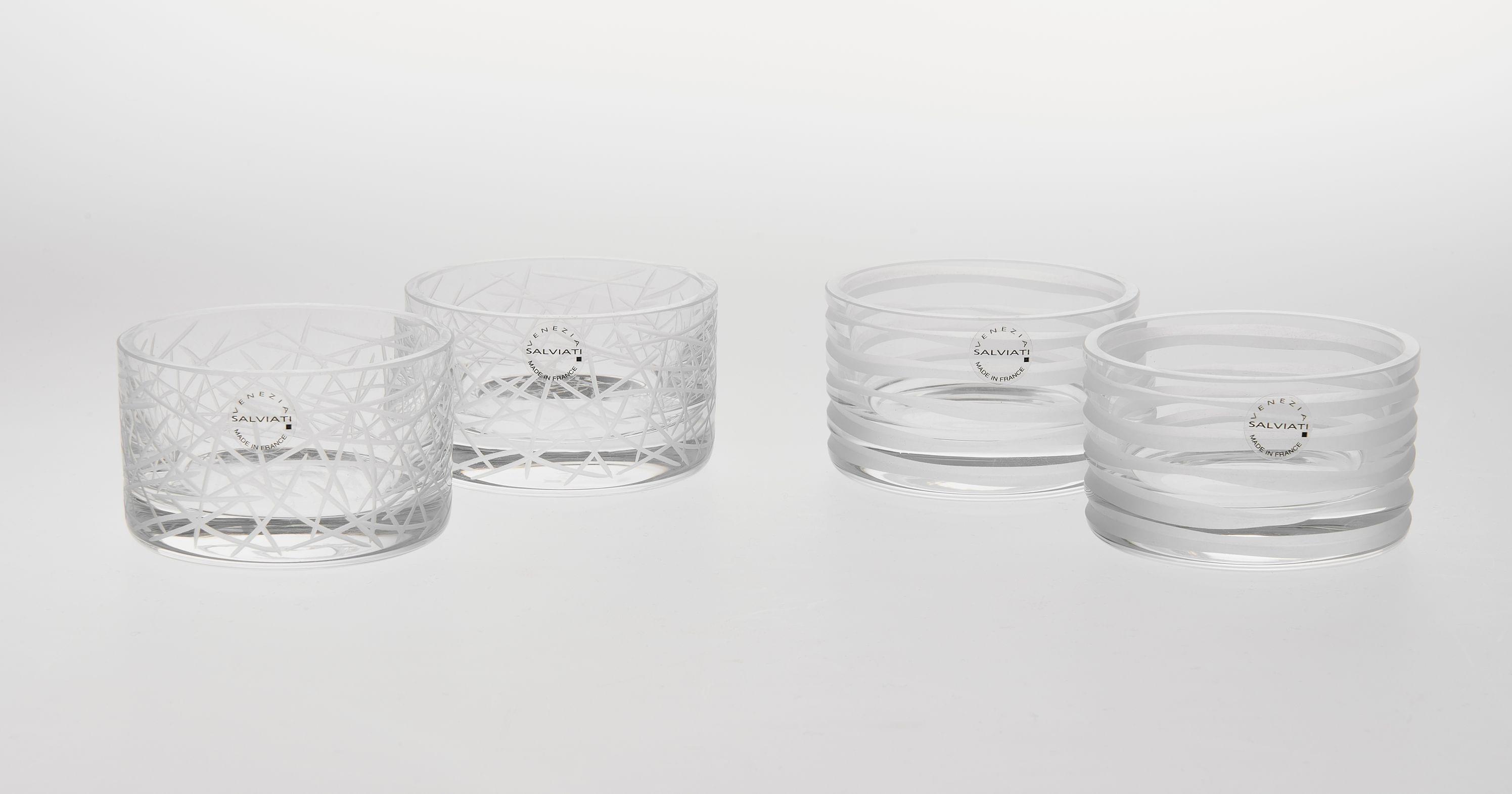 Verre transparent et verre opaque bleu, H 27 et 29 cm