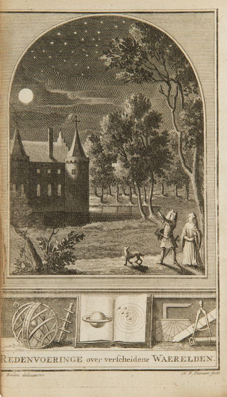 56. HUYGHENS: Wereld-Beshouwer of Gissingen over de Hemelsche Aardklooten. Rotterdam, Barend Bos, 1717;