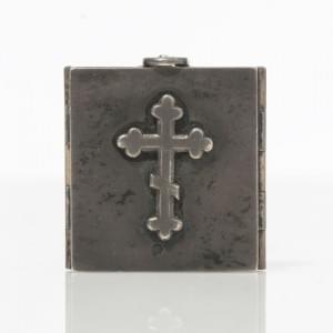 Icône russe sur panneau, oklade en métal argenté, 36x31 cm