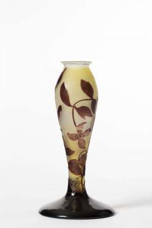 Verre multicouche dégagé à l'acide, à décor d'orchidées, H 23 cm