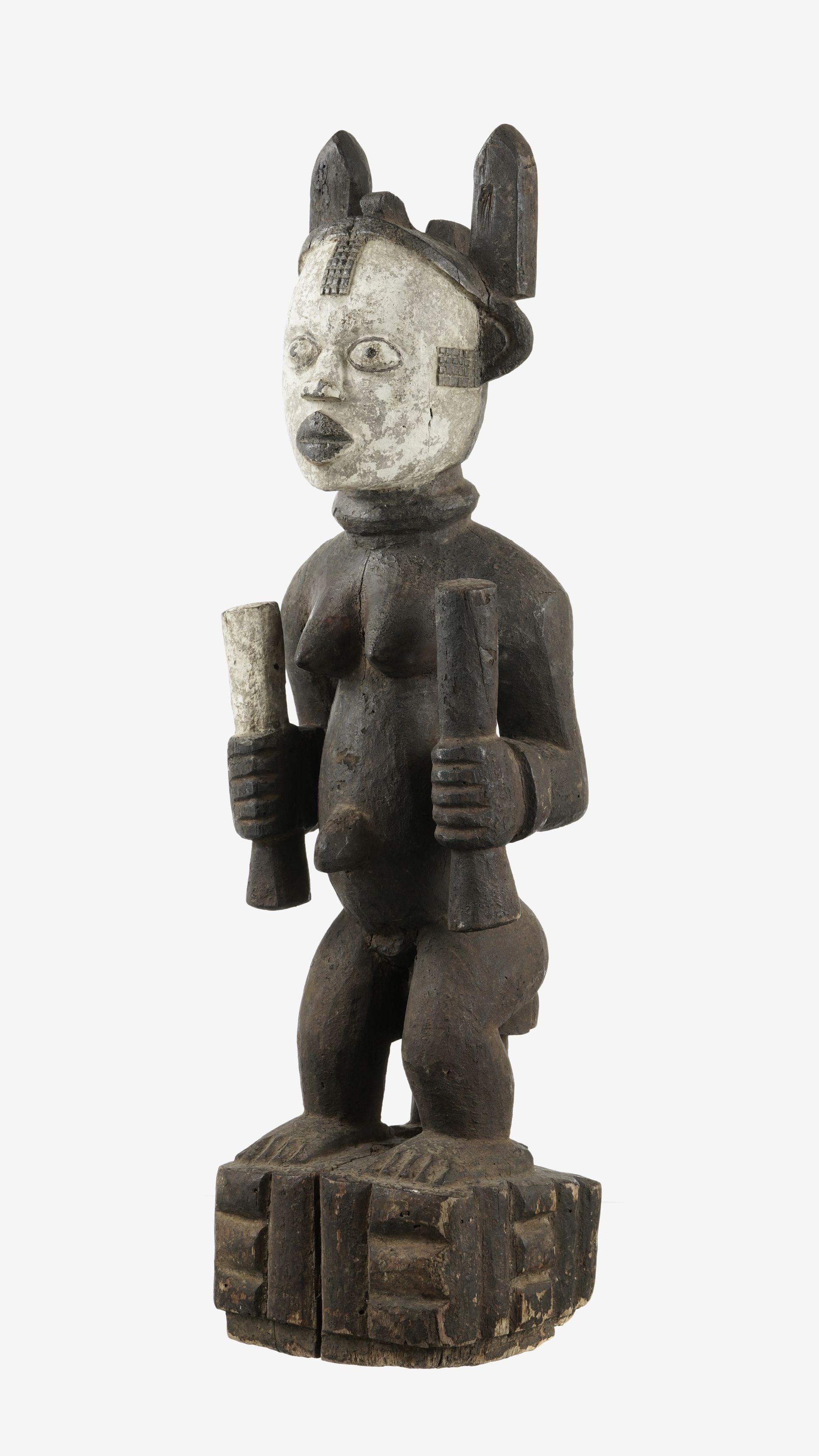 Bois et pigments blancs, restaurations anciennes, H 31 cm