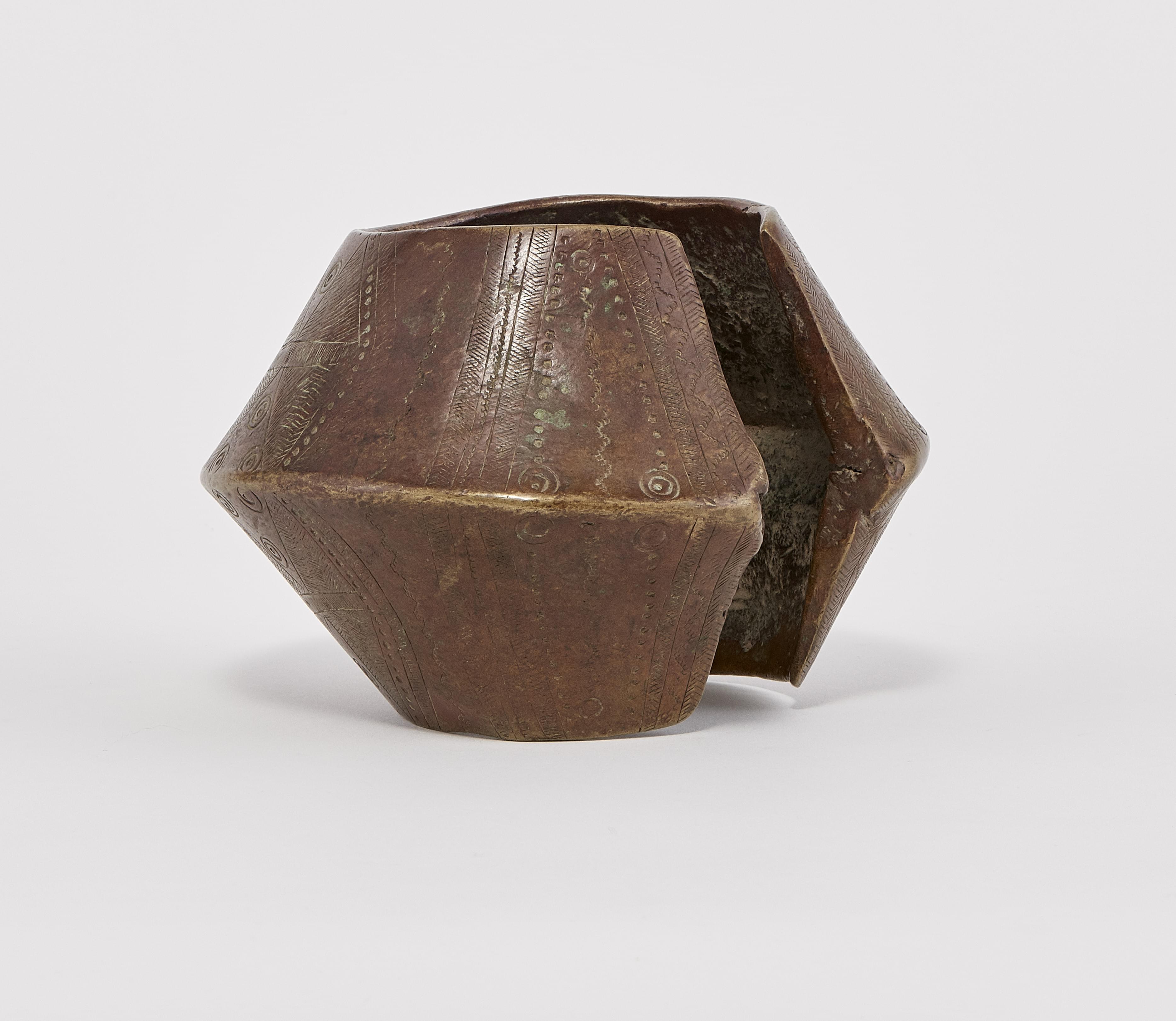 Bois à patine brune et brun clair, dents en métal, H 22 cm