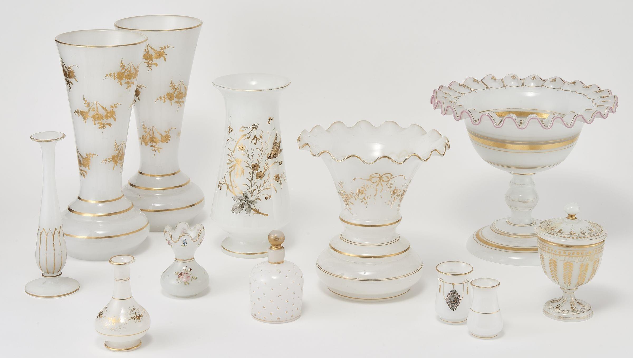 Comprenant: verseuses, tasses, boîtes, bougeoirs, vases, coqueti...