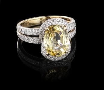47. Bague sertie d'un saphir jaune Ceylan non chauffé taille ovale (...
