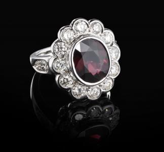 56. *Bague marguerite sertie d'un spinelle rouge non chauffé taille...