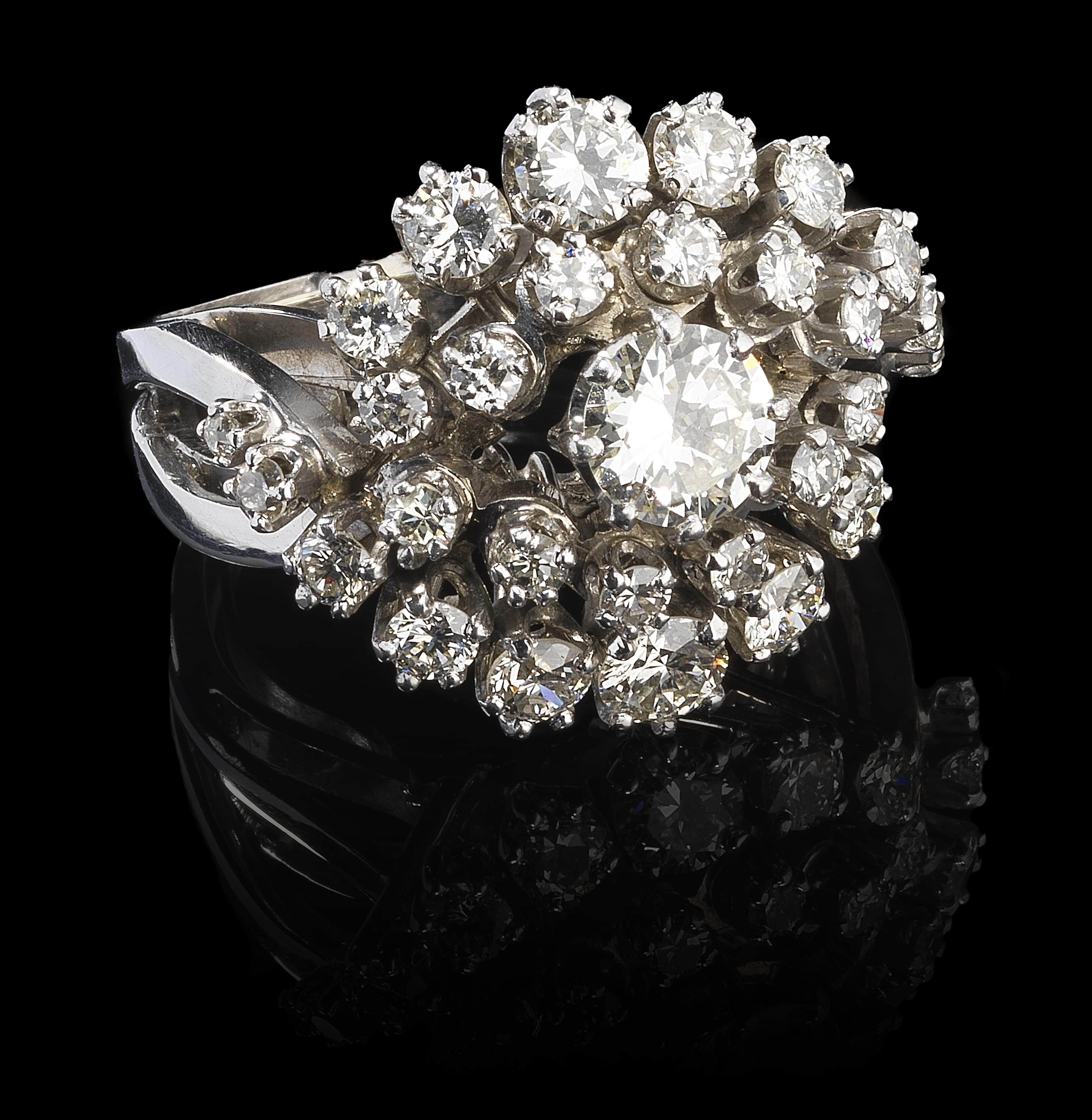 66. *Bague de style Art déco centrée d'un diamant (1,51 ct) rehaussé...