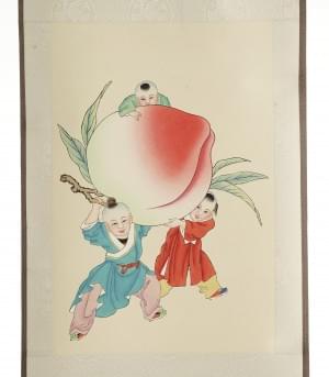 Pêches de longue vie (pan tao xian shou), montée en rouleau, 36x...