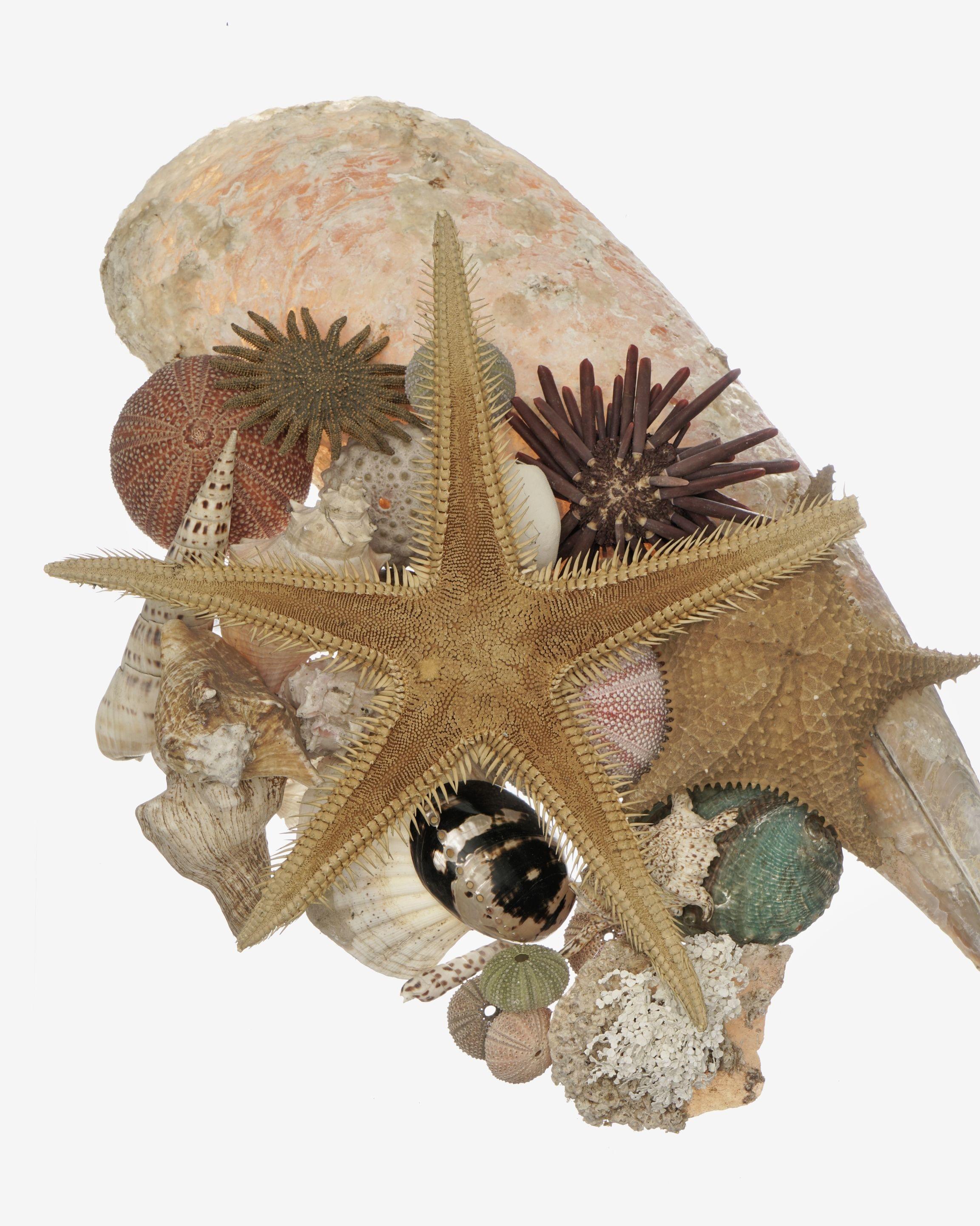 Verre et coquillages, H 38 cm