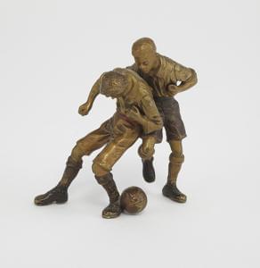 Joueurs de foot, bronze de Vienne peint à froid, H 7 cm