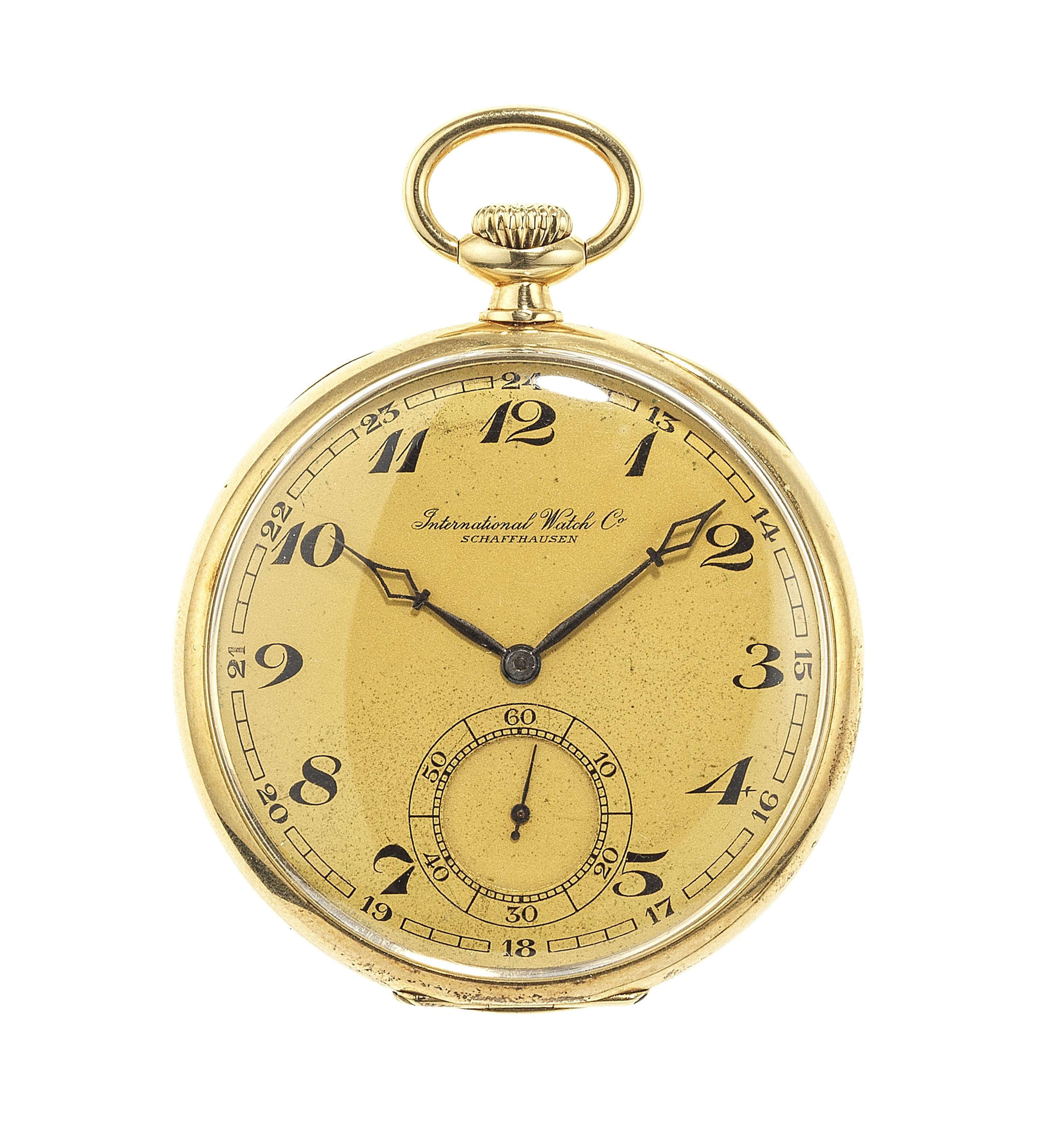 Cadran doré, aiguilles et chiffres arabes noirs, secondes à 6h, gravé à l'intérieur Schweiz. Generalpostdirektion, Herrn Eduard Hunold, Landbriefträger in Niderurnen, In Anerkennung seiner 40 Jährigen Dienst, 1. Juni 1934, or 585, D 46 mm, poids brut 56 g
