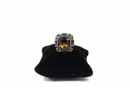 Métal doré, L 22 cm. On joint une bague sertie de pierres d'imitation pour le quartz et la citrine, métal noirci, doigt 57-17.