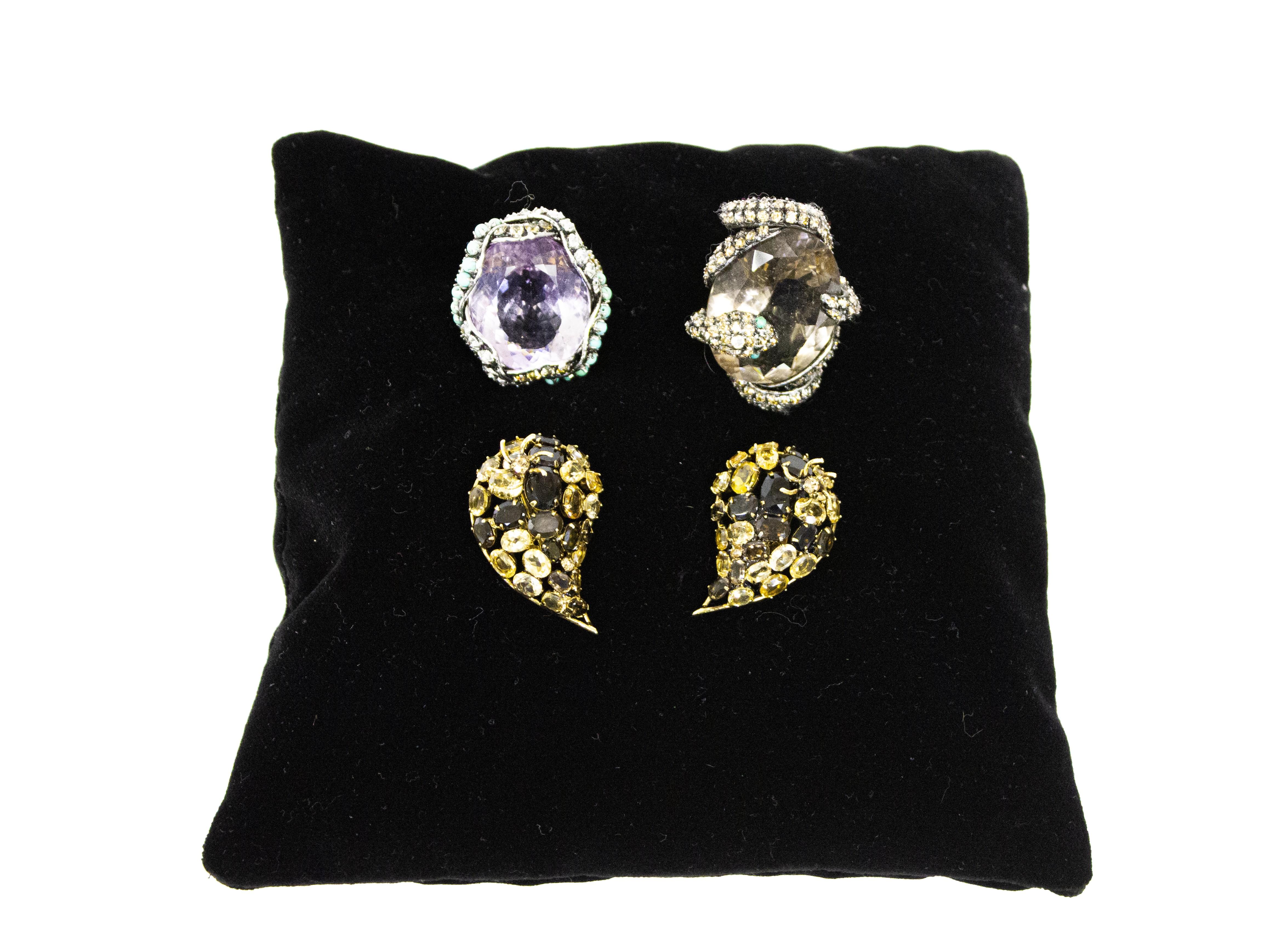 3124. Iradj Moini, lot de deux bagues et une paire de clips d'oreilles serties de diverses pierres