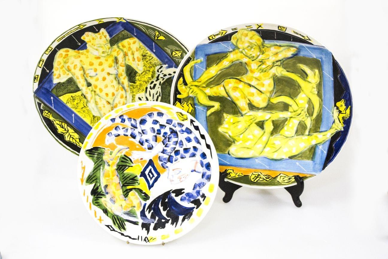 Ivoire sculpté et teint, coffret en bois, 56x56x5 cm