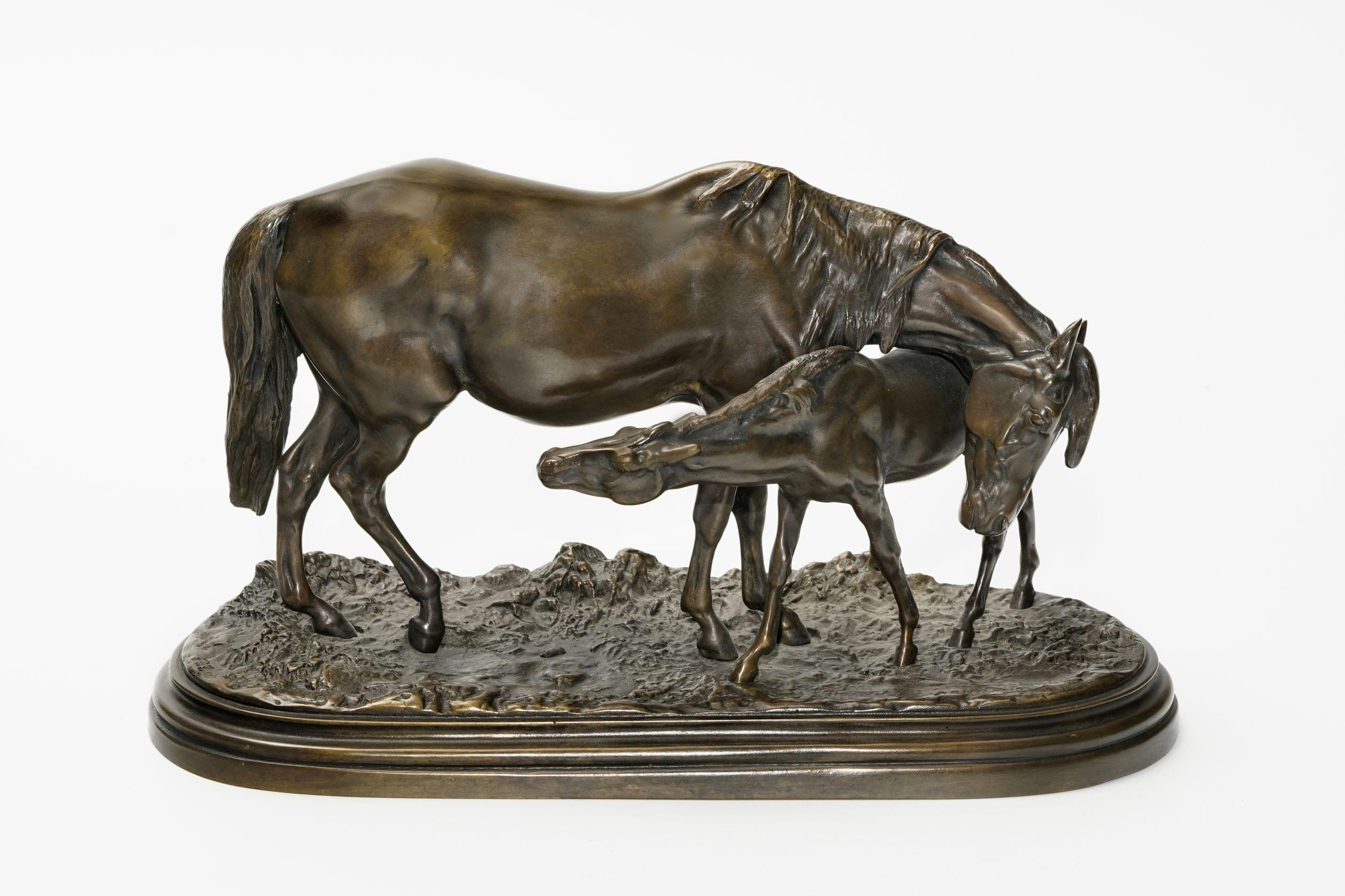 Cheval à l'arrêt, bronze à patine brune, signé, L 37 cm