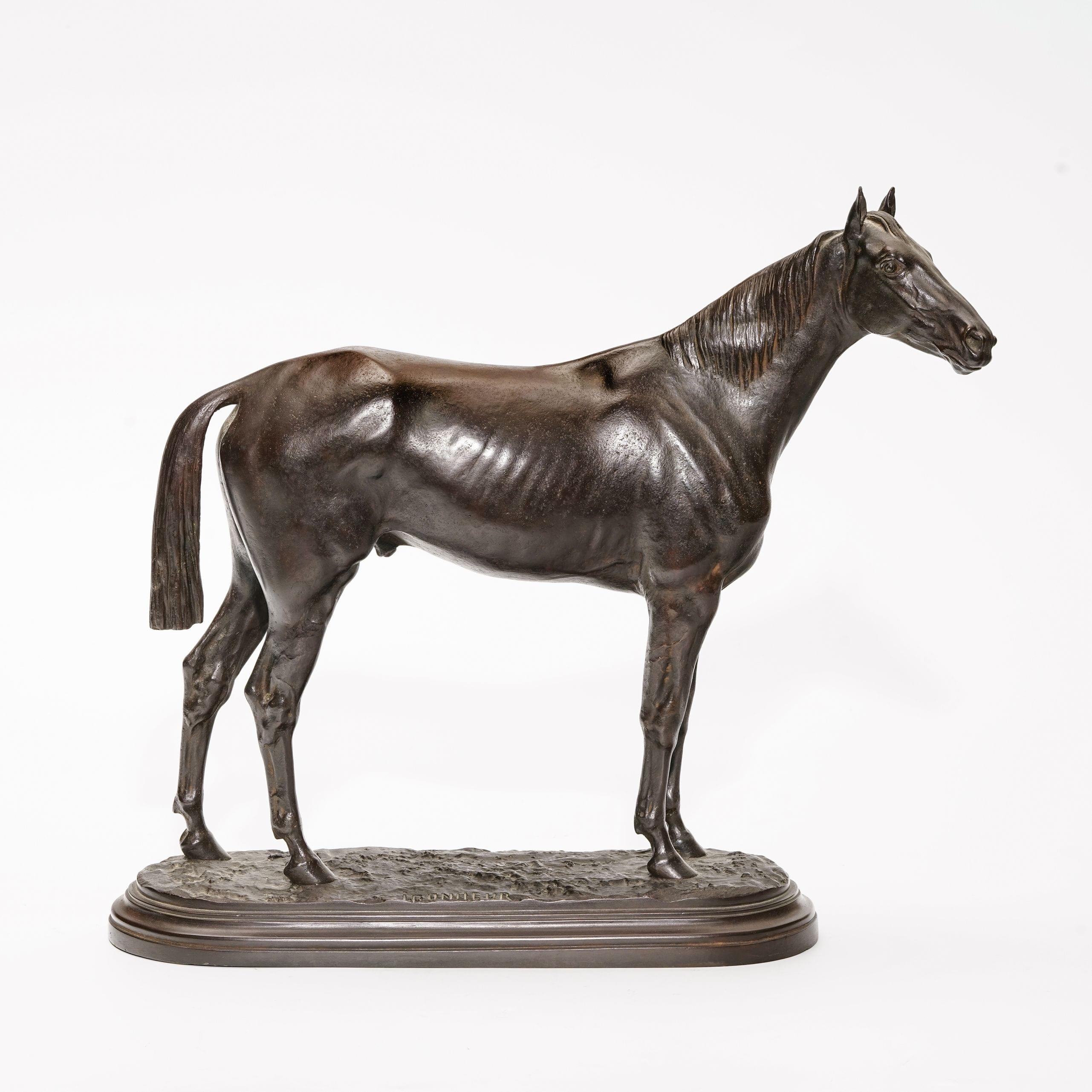 Jument et son poulain, bronze à patine brune, signé, L 30 cm