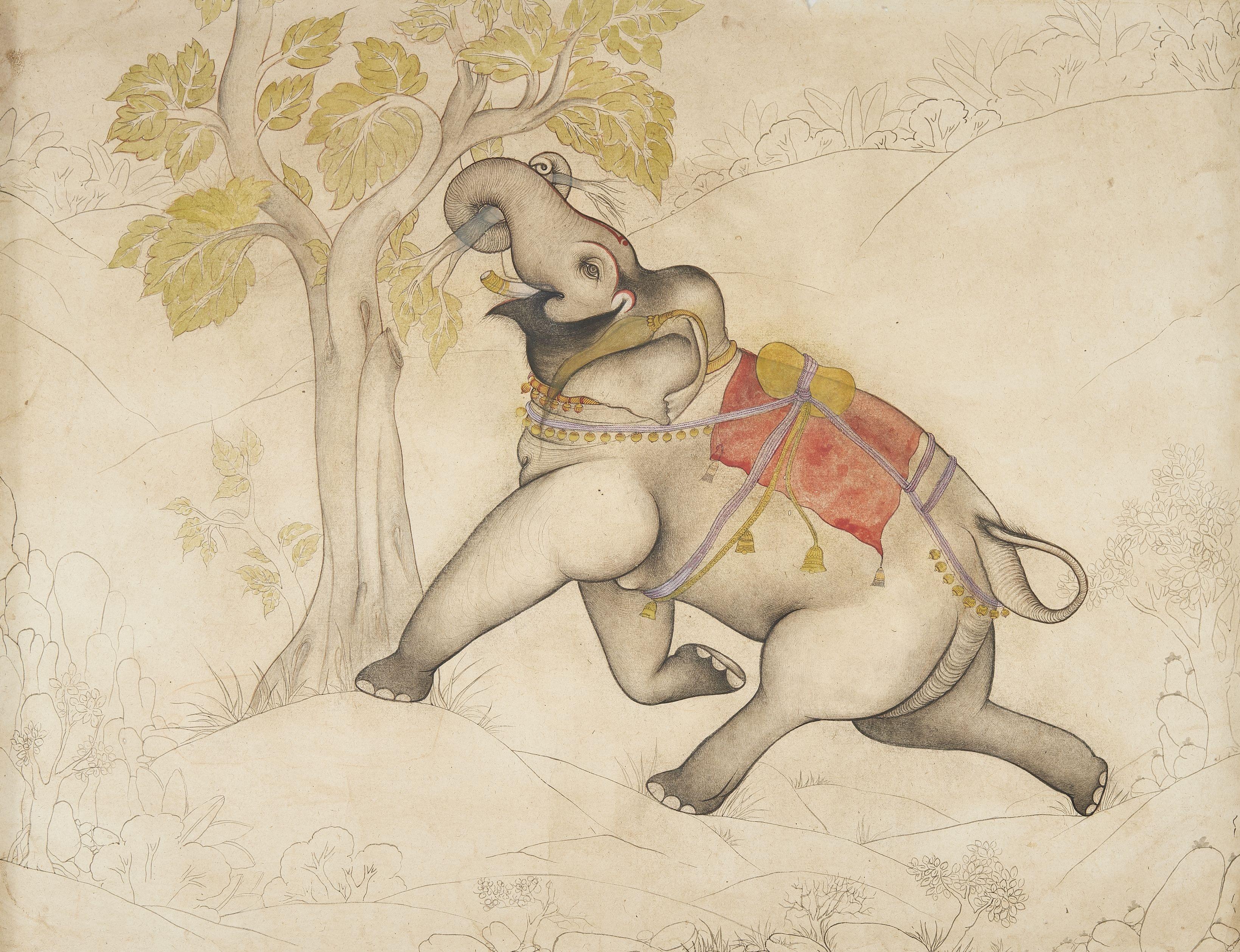 Eléphant, encre et pigments sur papier, 64x82 cm. Une peinture similaire vendue chez Sotheby's le 24 ocotbre 2017, vente Howard Hodgkin
