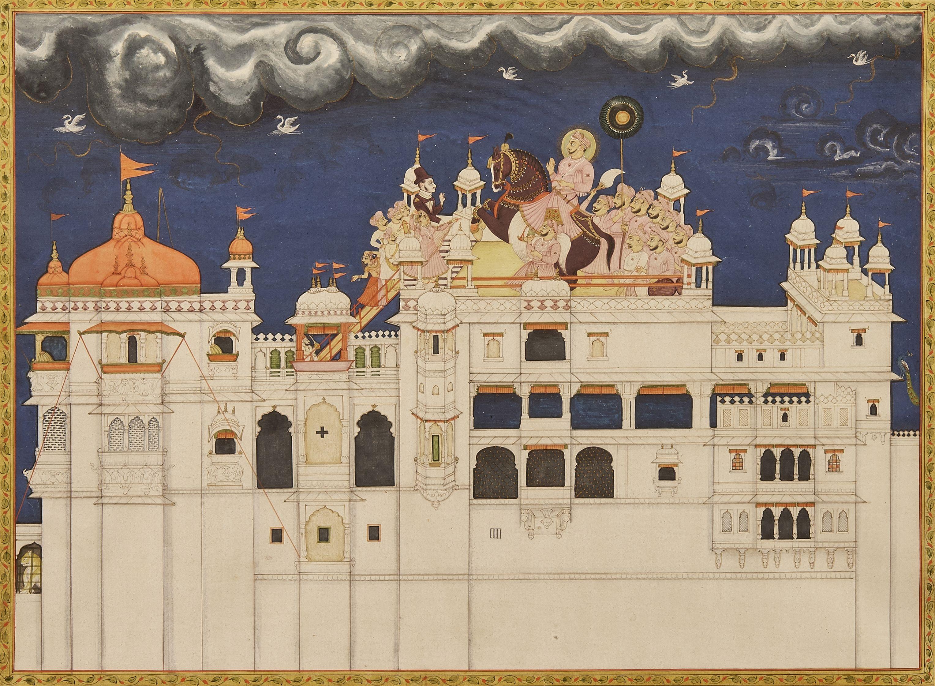 Maharaja Ram Singh de Kotah rencontrant un émissaire anglais, gouache sur papier, 33x44 cm