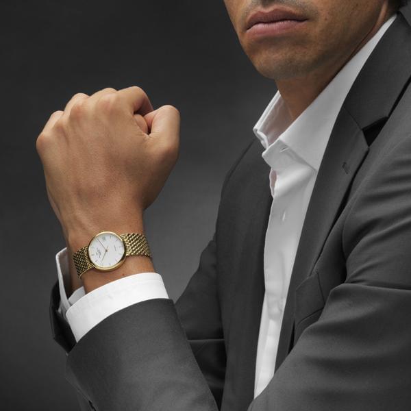 Cadran doré, aiguilles et chiffres arabes dorés, jour et mois à...
