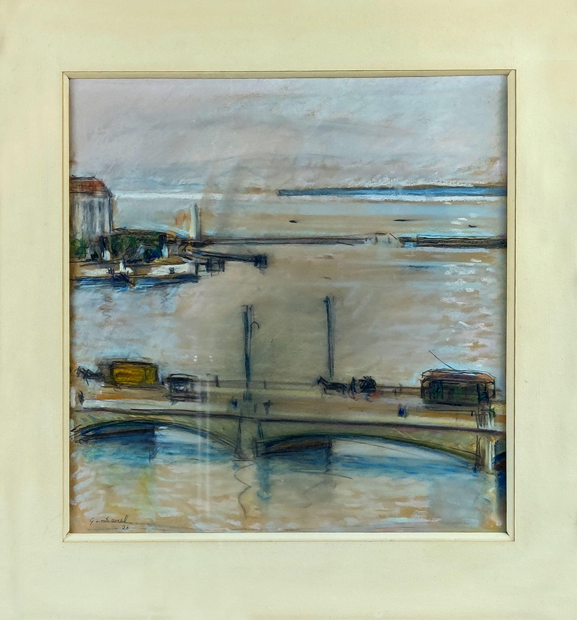 Pont du Mont Blanc, pastel, signé et daté 1920, 31x30 cm