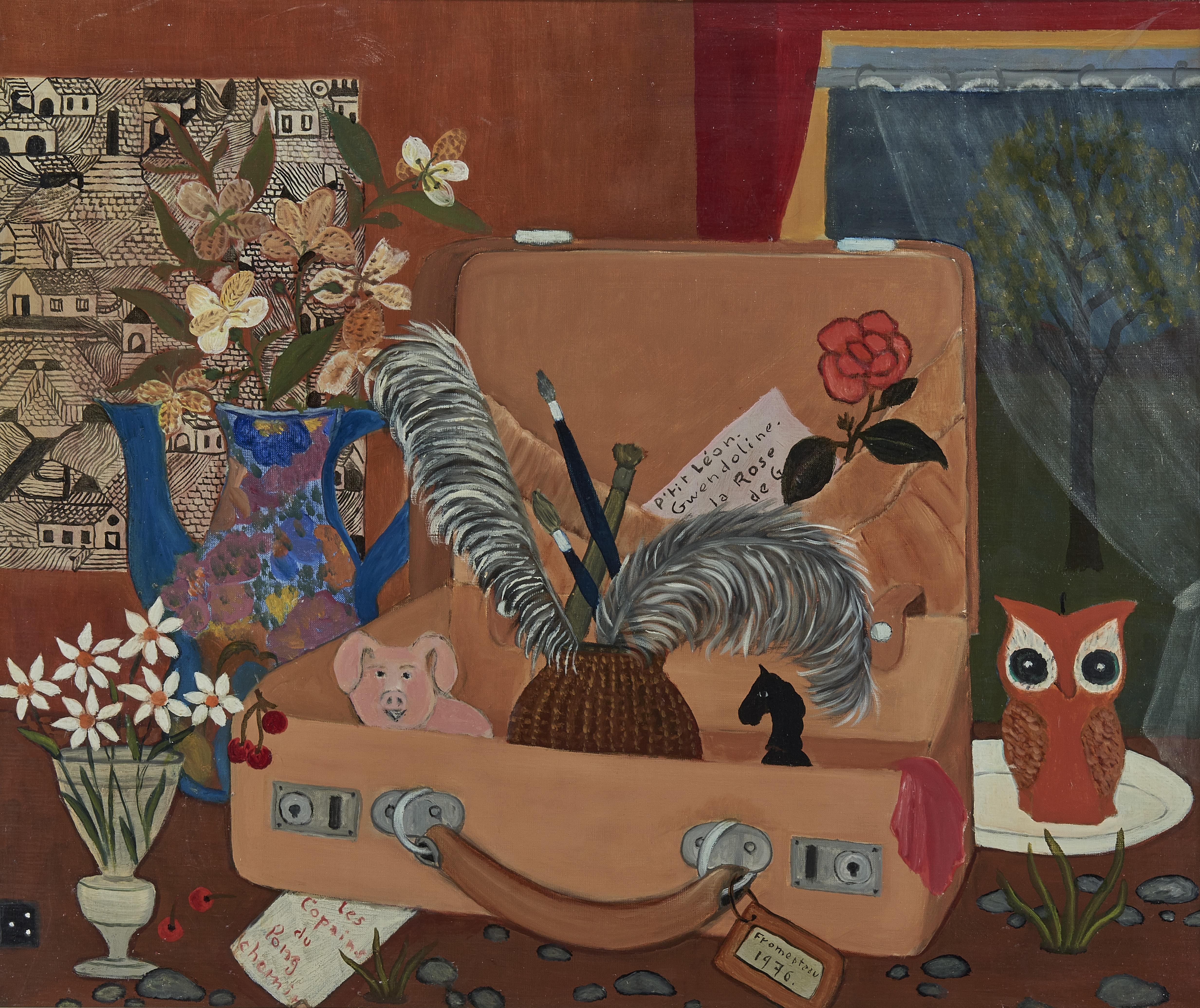 La valise, huile sur toile, signée et datée 1976, 54x65 cm