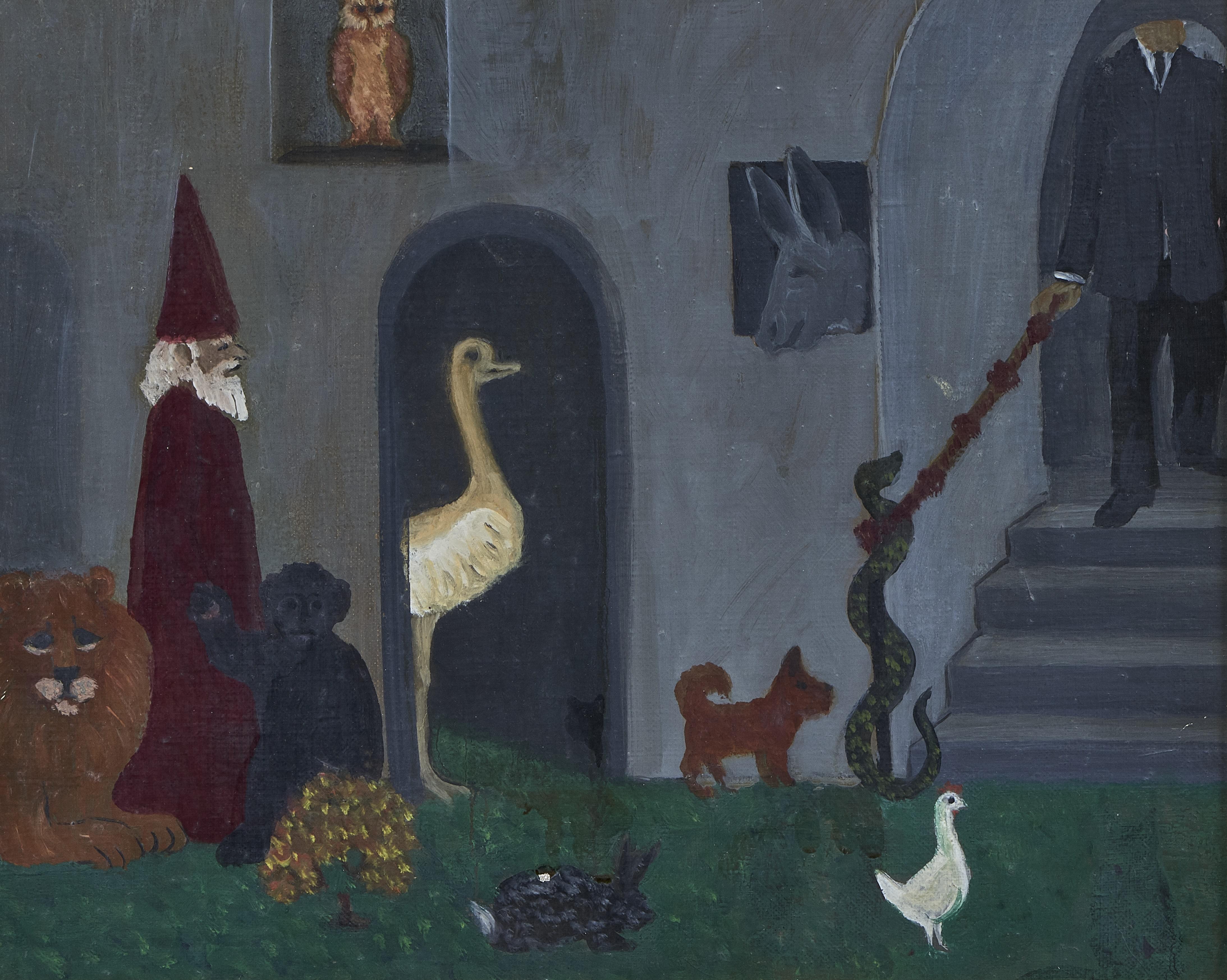 Le jugement de l'homme par les animaux, huile sur toile, 33x41 cm