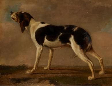 Chienne grognant, huile sur panneau, 33x42 cm. Cette oeuvre fait...