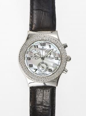 3139. Christian Jacques, montre ronde à quartz chronographe sertie de...
