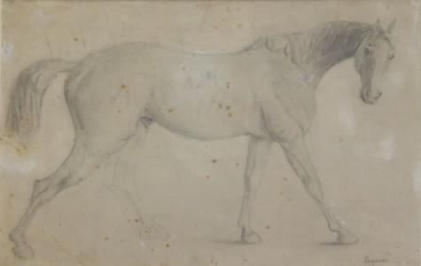 Etude de cheval, mine de plomb sur papier, signée, 26x37 cm