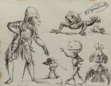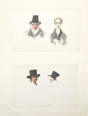 Quatre caricatures d'après nature, mine de plomb, aquarelle et g...