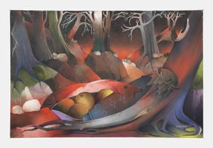 Jeune femme nue dans un paysage surréaliste, huile sur toile, 45...