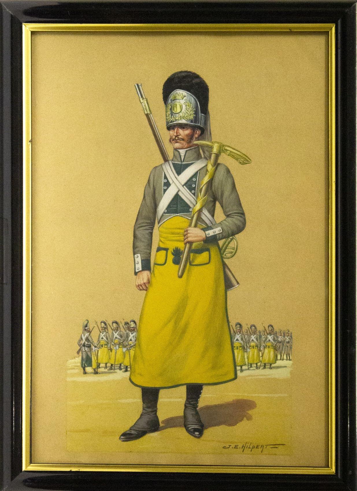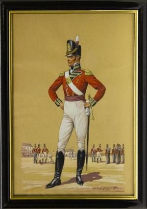 Soldats en uniforme, paire d'aquarelles et gouaches sur papier, 30x18 cm