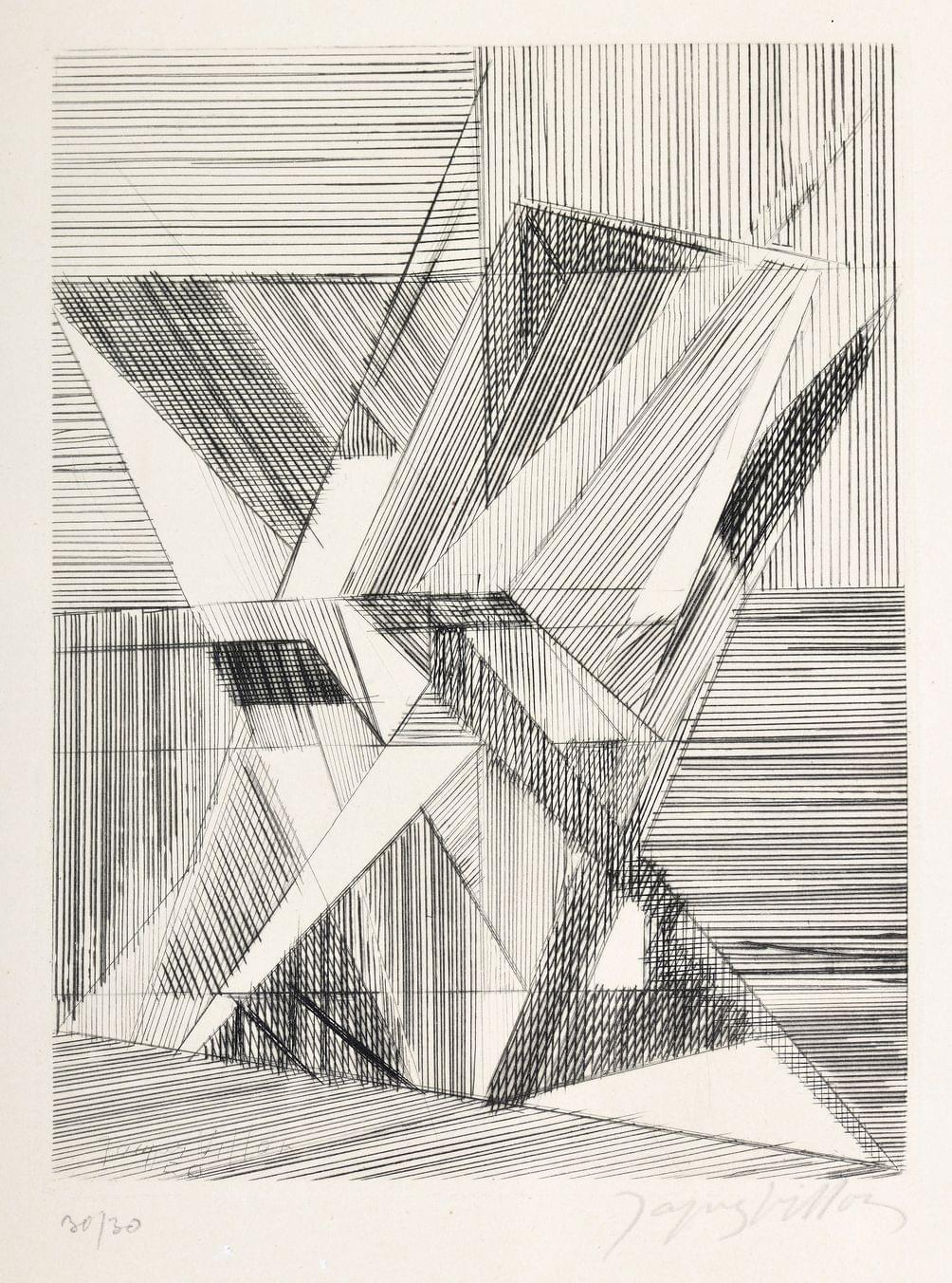 Composition cubiste, aquatinte sur papier, no 30/30 et signée, 23x29 cm