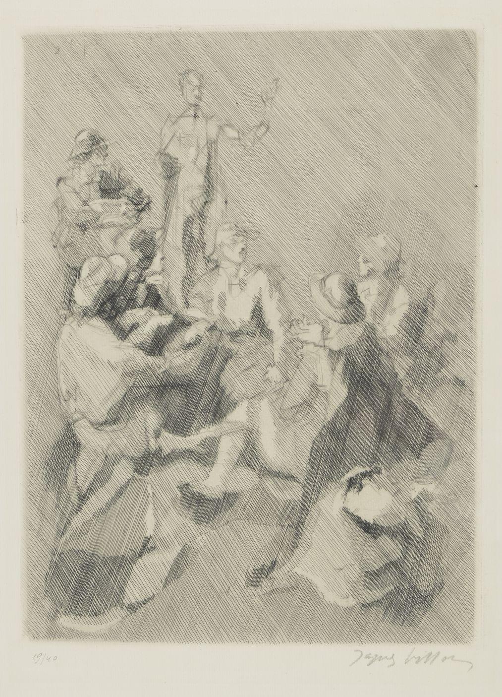 Conversation, pointe sèche sur papier, signée et no 19/40, 52x40 cm